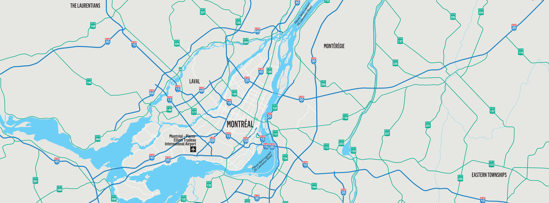 Montreal tiene una riqueza cultural sin parangón, pero también ofrece una increíble variedad de experiencias con solo salir de la ciudad. Entre quince minutos y dos horas de manejo descubrirá preciosos panoramas totalmente diferentes y sorprendentes paisajes naturales. ¡Explore y descubra usted mismo las onduladas colinas de los Cantons-de-l'Est, las cimas de los Laurentides, los descubrimientos culinarios de Montérégie, la hermosa belleza forestal de Lanaudière y el sorprendente entrenamiento de Laval!